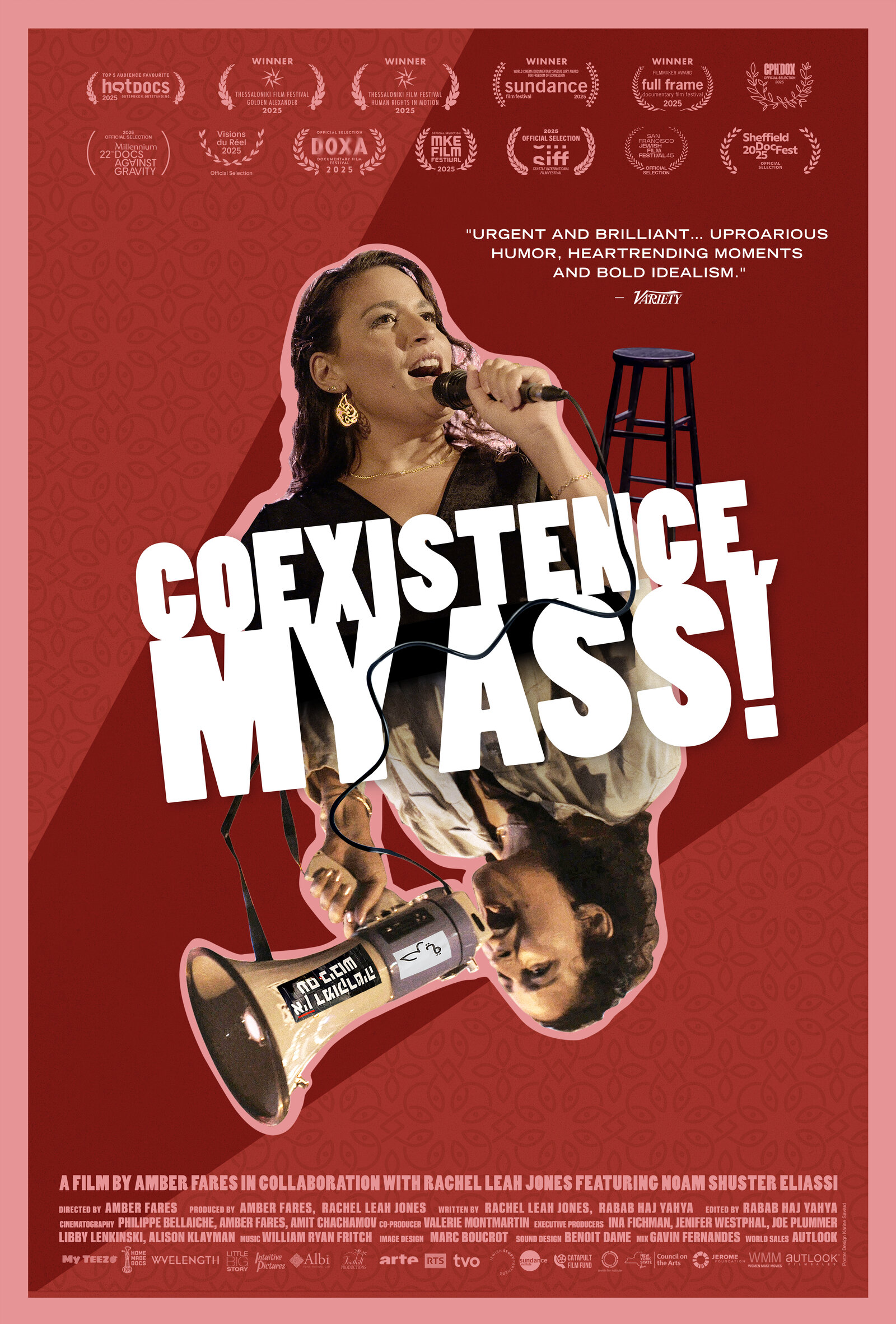COEXISTENCE, MY ASS! follows Israeli activist-comedian Noam Shuster Eliassi as she creates a comedy show by the same name. Shot over five tumultuous years, the film traces Noam’s personal, professional and political journey in tandem with the region’s steady deterioration. Raised in a bilingual Israeli-Palestinian village — the only intentionally integrated community in the country — Noam grows disillusioned with traditional peace activism. She pivots to stand-up and quickly attracts attention across the Middle East. But as her star rises, everything around her falls apart. With biting satire, Noam pushes her audiences to face difficult truths that aren't always funny but do remind us that another reality is possible.